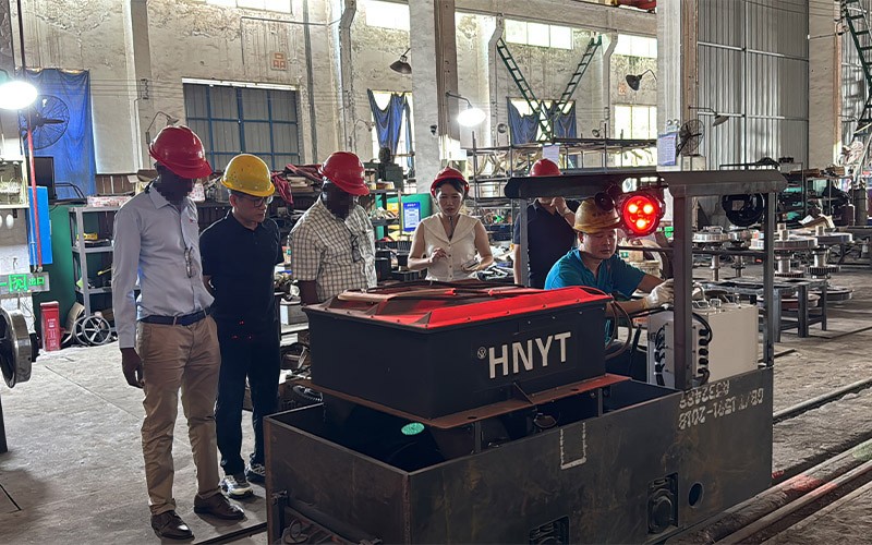 考察期間,客戶對(duì)電機(jī)車的生產(chǎn)過(guò)程尤為關(guān)注。在生產(chǎn)車間,客戶沿著流水線仔細(xì)查看,從核心部件的精密加工,到整車的模塊化組裝,再到出廠前的多維度質(zhì)檢,每一個(gè)環(huán)節(jié)都與陪同的技術(shù)人員深入交流。當(dāng)看到車間采用的智能檢測(cè)設(shè)備可實(shí)時(shí)監(jiān)控電機(jī)性能參數(shù),且所有工序均有標(biāo)準(zhǔn)化作業(yè)指導(dǎo)書時(shí),客戶對(duì)公司的生產(chǎn)規(guī)范性和質(zhì)量把控能力給予高度認(rèn)可,直言 “這樣的生產(chǎn)流程,讓我們對(duì)產(chǎn)品質(zhì)量很放心”。隨后在產(chǎn)品展示區(qū),客戶結(jié)合自身礦區(qū)的運(yùn)輸需求,重點(diǎn)了解了電機(jī)車的牽引能力、續(xù)航時(shí)長(zhǎng)等關(guān)鍵指標(biāo),技術(shù)人員通過(guò)實(shí)物演示和數(shù)據(jù)對(duì)比,讓客戶清晰看到產(chǎn)品的適配性。